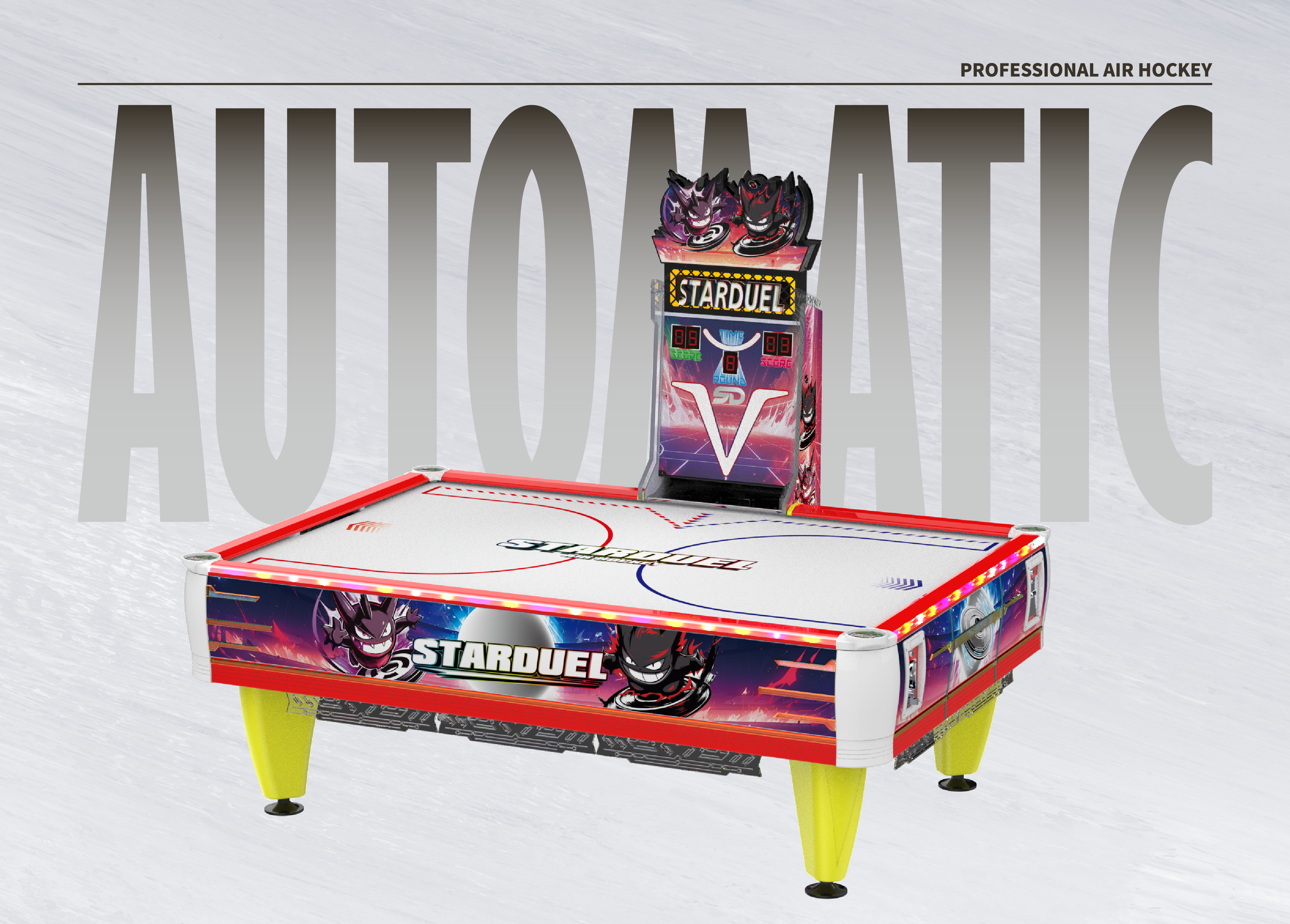 星界競斗 2025 隆重登場!這款全新的空氣曲棍球桌採用嶄新的設計,帶來令人驚艷的視覺遊戲體驗。前所未有的燈光效果營造出沉浸式的競技氛圍。機台採用高品質材料打造,結構穩固且耐用,確保卓越的遊戲表現。星界競斗不僅非常適合家庭娛樂,也同樣適用於遊樂場,為玩家帶來刺激、快速的對戰體驗,以及最令人興奮的空氣曲棍球樂趣!
